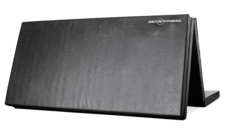 When fully extended, the mat spans 4×8’ total. A carrying handle on the side makes it easy to carry and move the mat when it’s folded up. The mat is high-quality and durable, and it comes in black with a white REP Fitness logo. The 4-Fold Fitness Mat is ideal for athletes learning handstands, tumbling, yoga, and more.