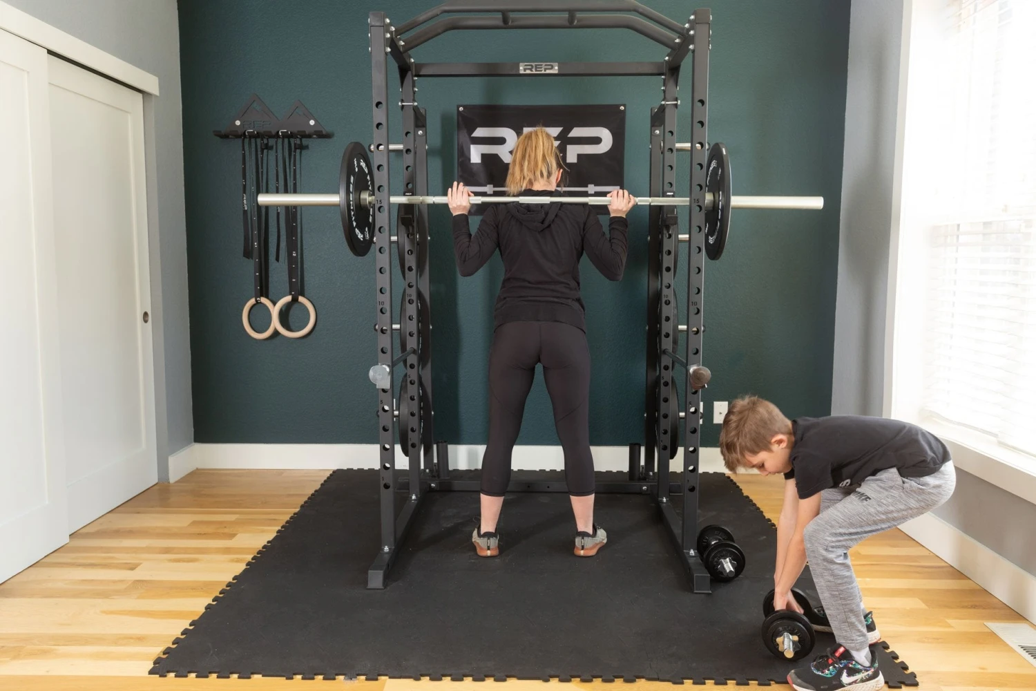 Choose between two options: a 20lb pair (two handles, four collars, four 5lb plates, and four 2.5lb plates) or the 52.5lb pair (two handles, four collars, 16 5lb plates, four 2.5lb plates, and four 1.25lb plates). You can add on a 40lb weight upgrade, too (four 10lb plates). The max load per dumbbell is 85lbs, including the handle (4lbs), collar (0.5lbs), and plates.