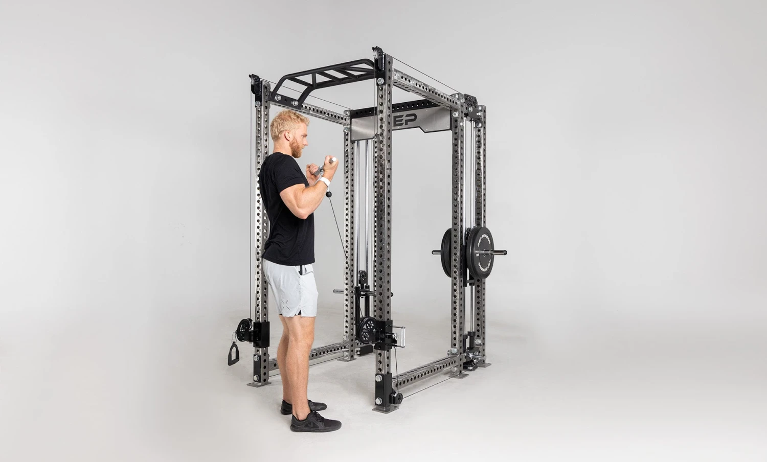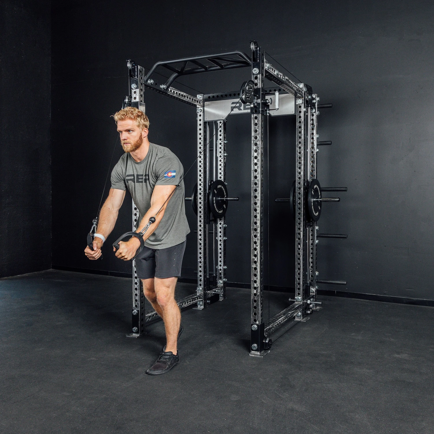 The Athena Plate-Loaded Side-Mount Functional Trainer is a low-profile cable attachment that integrates into the side of your PR-4000 or PR-5000 series power rack. Get the functionality of a functional trainer machine so you can build your upper body and get in accessory and isolation work, without needing space for a stand-alone unit. In addition, it provides a lower price point (and smaller footprint) than the Ares Attachment, which includes a lat pulldown and low row. The Athena features a 2:1 pulley ratio, which means 20lbs feels like 10lbs. The weight horns have a loadable length of 10.6” each and a max weight capacity of 540lbs (feels like 270lbs). The Athena gives you the freedom to customize your rack’s functionality by choosing either a left, right, or dual-sided setup. The patent-pending Athena features a trolley that allows you to do cable work at any height on the upright and is lined with a special plastic to protect them.
