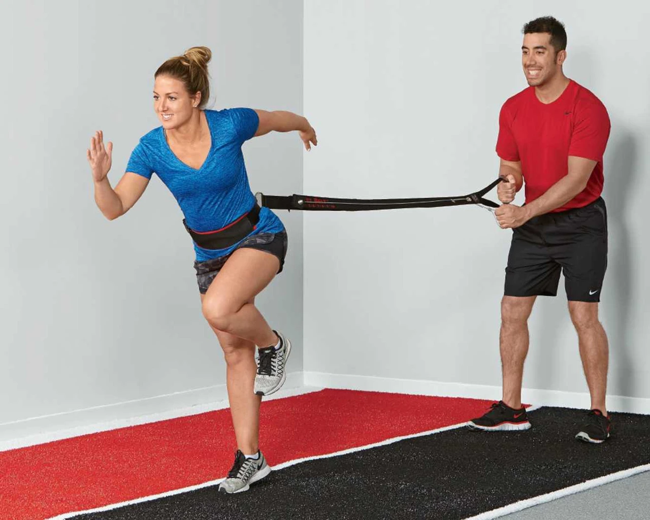 #1 The Pop Method: For this method start by fastening 1”-2” inches of velcro to the belt. The athlete performs an action and pops the resisting velcro. In the first few tries both the trainer and athlete will notice a “blip” in form as the athlete adjusts to the extra resistance. After the initial adjustment the athlete should feel the resistance but the trainer should not be able to detect it in the athlete’s form. Train at this level until the athlete can perform the action without feeling extra resistance. Once this is accomplished increase resistance by increasing amount of velcro fastened to the belt. Use inch marks along the velcro to measure the resistance levels.