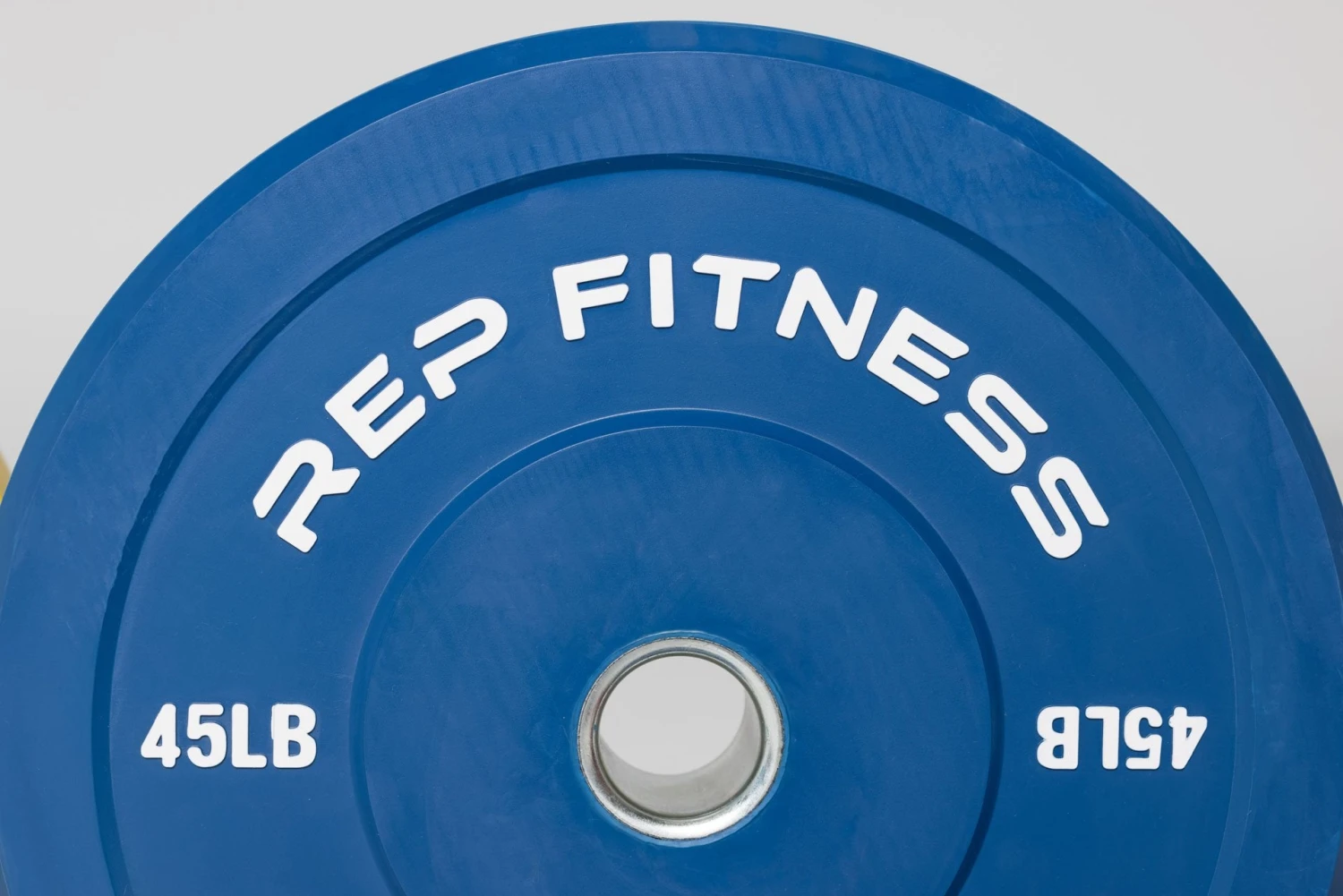 Outfit your gym with these extremely durable and easily identifiable colored bumper plates. Bumpers, with a weighted steel center covered by a thick, solid rubber coating, are ideal for training that involves dropping the plates from overhead or shoulder height, such as Olympic weightlifting, cross-training, and HIIT workouts. Bumpers are quieter than metal plates and designed to not harm the bar, floor, and surroundings. REP’s bumpers have low bounce, which means more control over the barbell when it hits the ground.