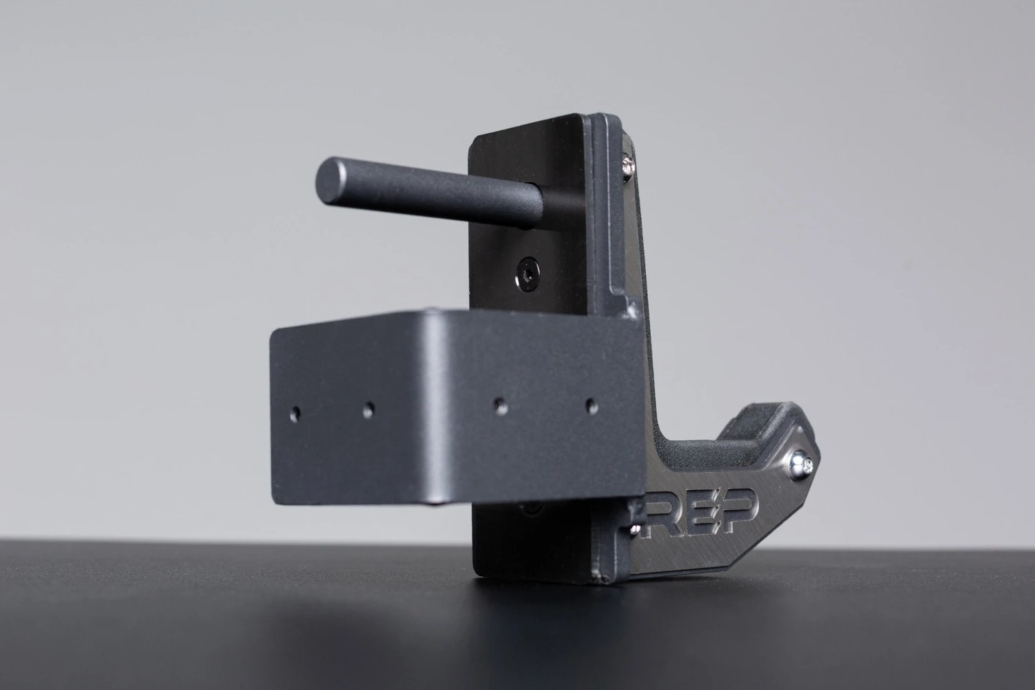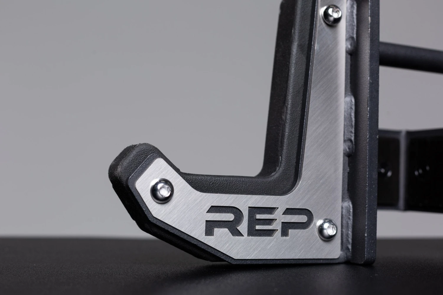 Flat J-cups are tough, with a weight capacity of 1,000lbs. They feature high-end finishes, such as a stainless-steel REP logo plate, and they’re laser cut and bent with rounded corners. The bottom liners are one piece to prevent rotation of the liners. The 4000 Series cups are made for 3×3” uprights with 5/8” pins. The 5000 Series J-cups are designed for 3×3” uprights with 1” pins. They extend off the rack 6”. These cups are sold in pairs.