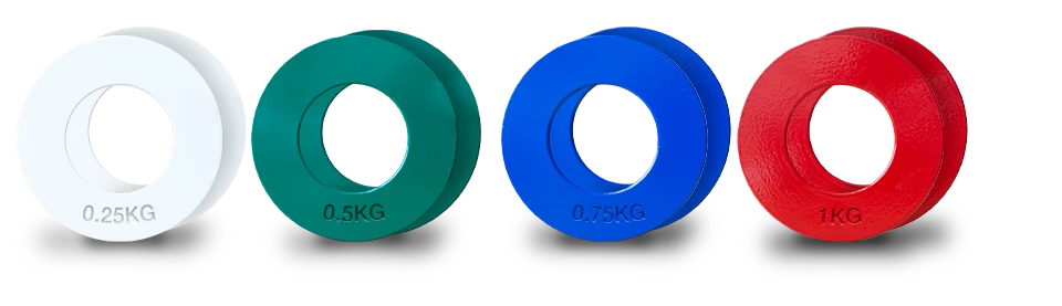 Chase those PRs with the Fractional Change Plate Set (KG). The ability to incrementally load a barbell with smaller jumps can make the difference between setting a new PR or not. These change plates are sold as a full set with one pair of each: 0.25kg, 0.5kg, 0.75kg, and 1kg. We also offer change plates in pounds.