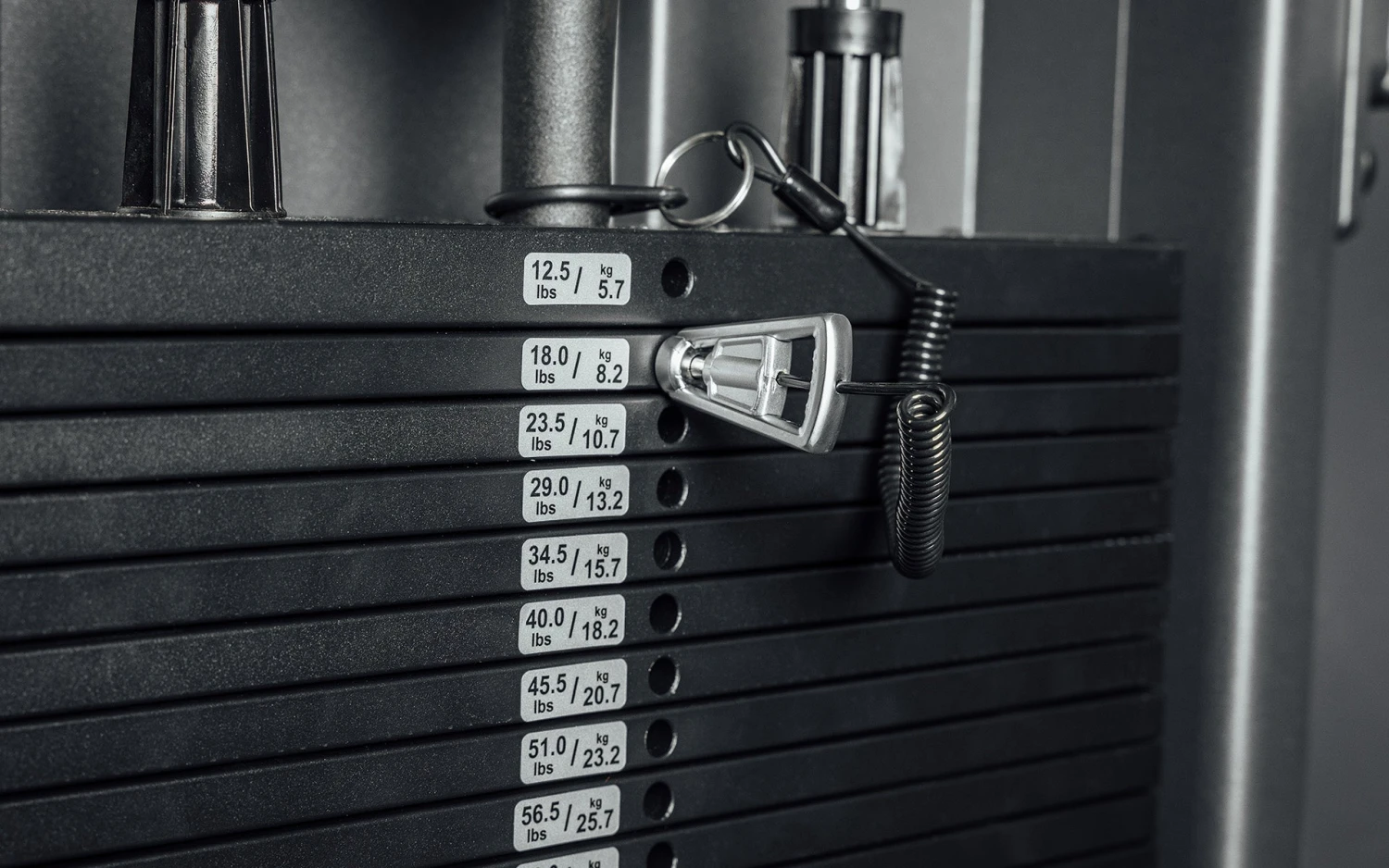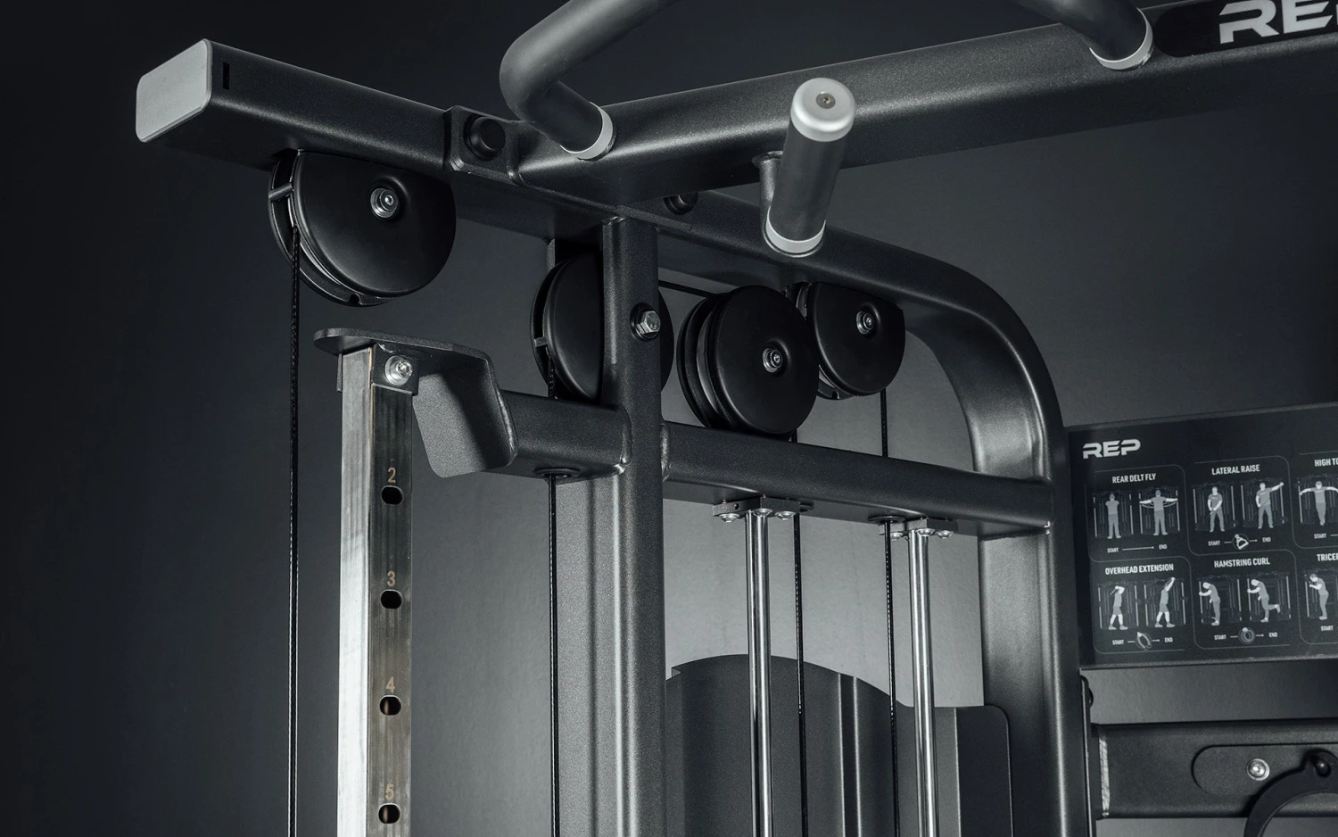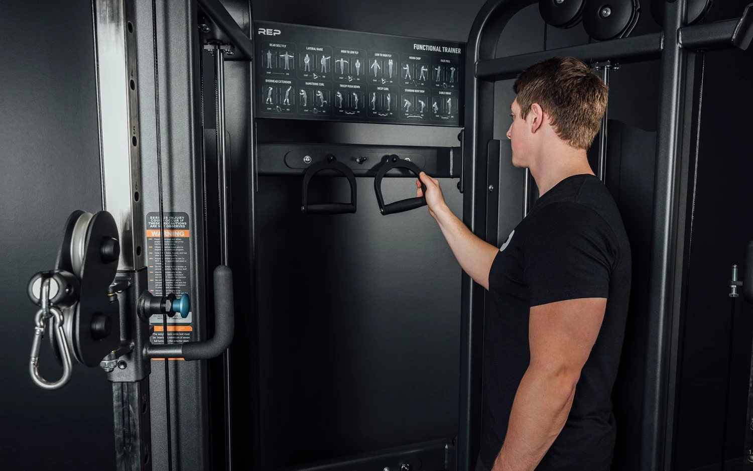 The FT-5000 2.0 is packed with high-end features, like multiple grips for pull-ups and a magnetic-tipped pin to lock weight in place, plus an additional pin to secure the trolley. The sturdy, 11-gauge frame is double-coated with a chip-resistant, electrostatic powder coating and topped with a matte black finish. The cables are smooth, with aluminum pulleys instead of plastic.An added welded ring makes it easy to attach and remove a carabiner; swap a larger carabiner for different attachments; and use the end piece as an additional grip option. The FT-5000 2.0 comes with two durable, polymer D-handles, storage pegs for the attachments, and a mountable diagram demonstrating 12 movements you can do on the machine.