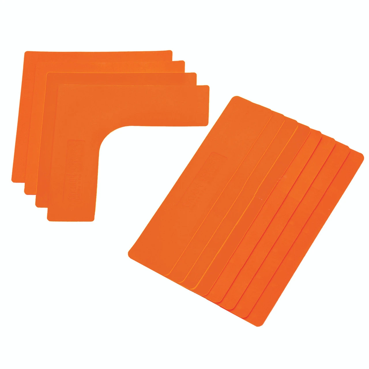 Available in Orange, Lines and Corners are great to create 36′ mini courts, to set up target areas, and even to make arrows. Each set consists of 8 lines and 4 corners.