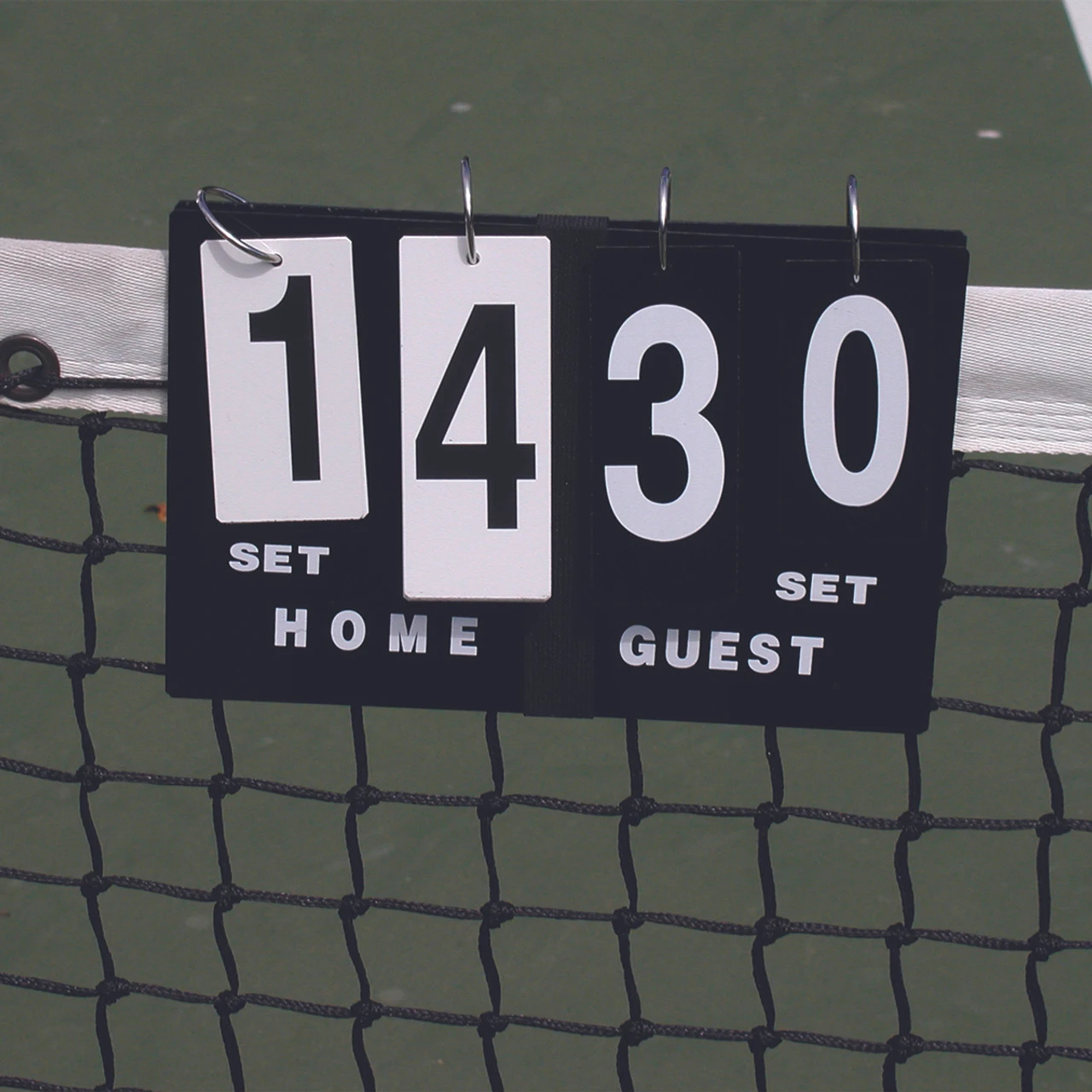 The Quick Score is a portable scorecard that sits on top of the net. The Quick Score is high quality, clear to read and durable. Also ideal for league players and teams to take on the road; it is the only portable scorekeeper that includes game and set scores. Contains numbers up to 7 to allow scoring for regular as well as 8-game pro sets.