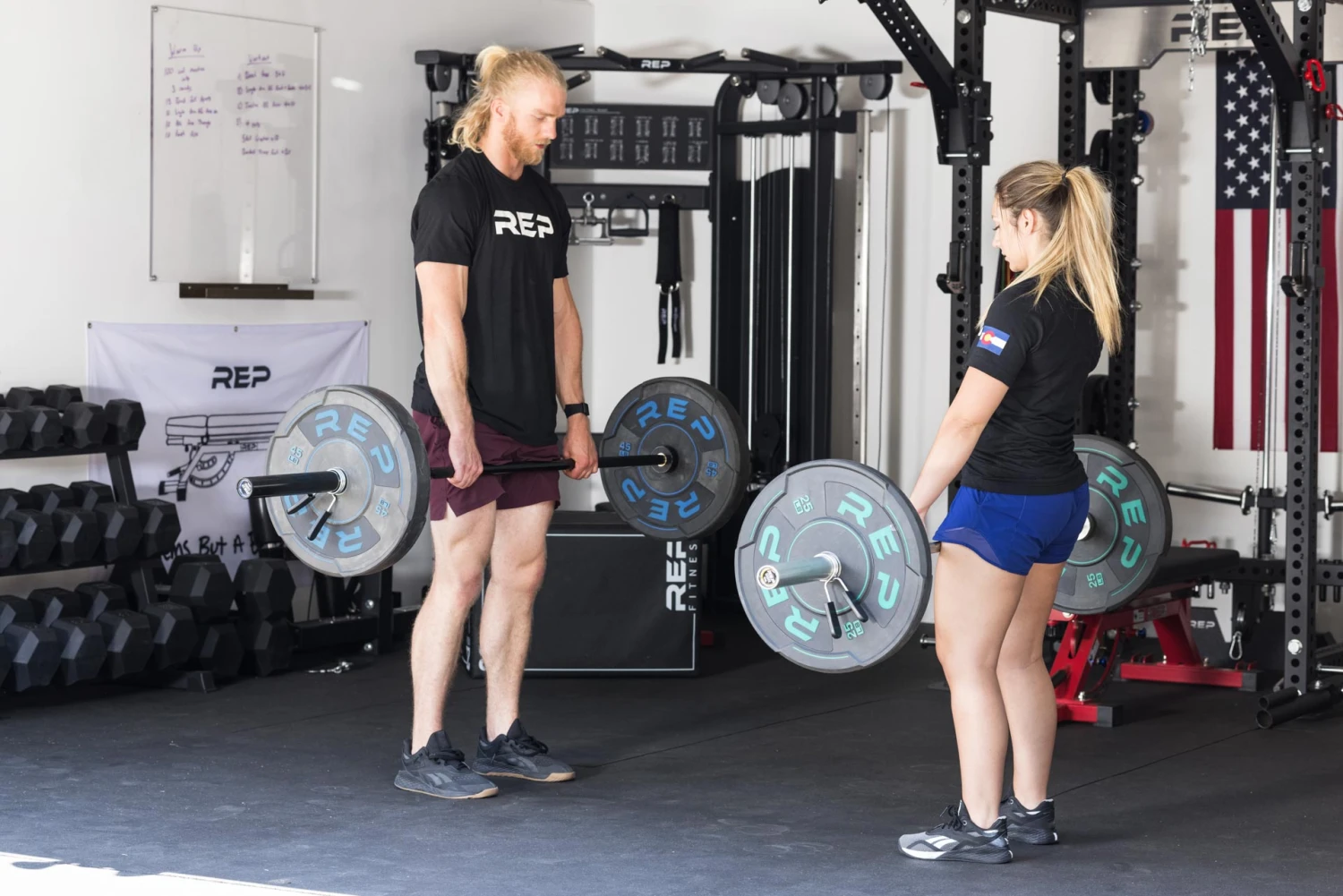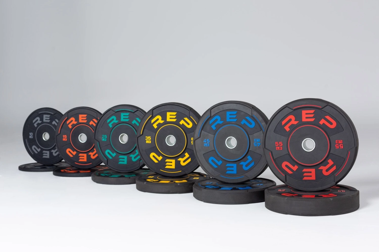 REP Sport Plates are some of the most durable bumper plates on the market, made with strong, steel center inserts and high-quality rubber. The Sport Plates have a low bounce and up to a 10% lower decibel output than standard bumper plates when dropped from overhead, which means they quiet and won’t annoy your neighbors when you drop them. The plates are easy to handle, thanks to their unique, textured, rubber outer edges and side cutouts. The black rubber is accented with raised, colored lettering and colored lines and accent marks.