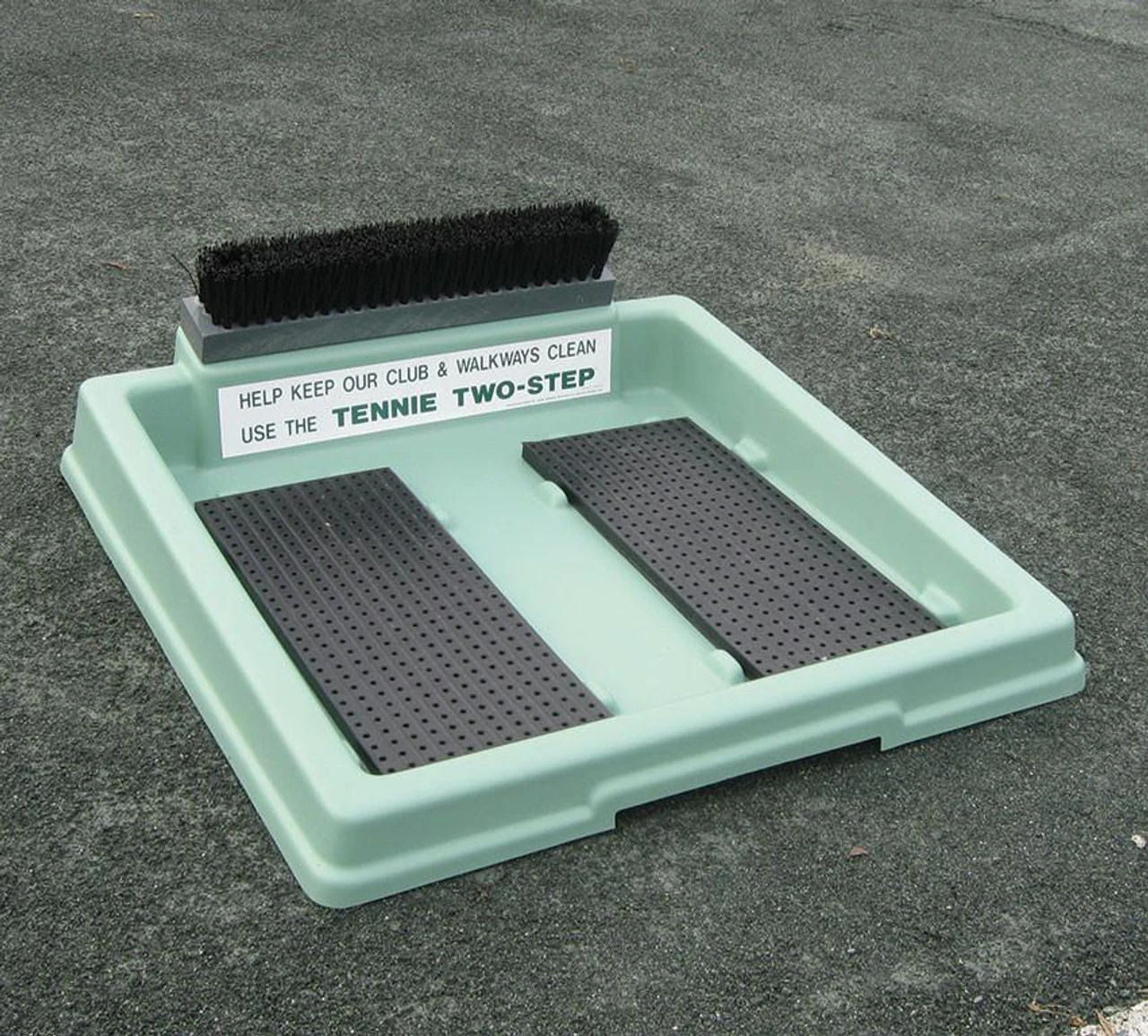 Must have court accessory. The Tennie Two-Step has become the industry standard for keeping clubhouse carpets, players’ shoes, and tennis club pathways clean. The results are noticeable everywhere. Clean tennis shoes mean less clay in the pro shop, on walkways, or in your car.