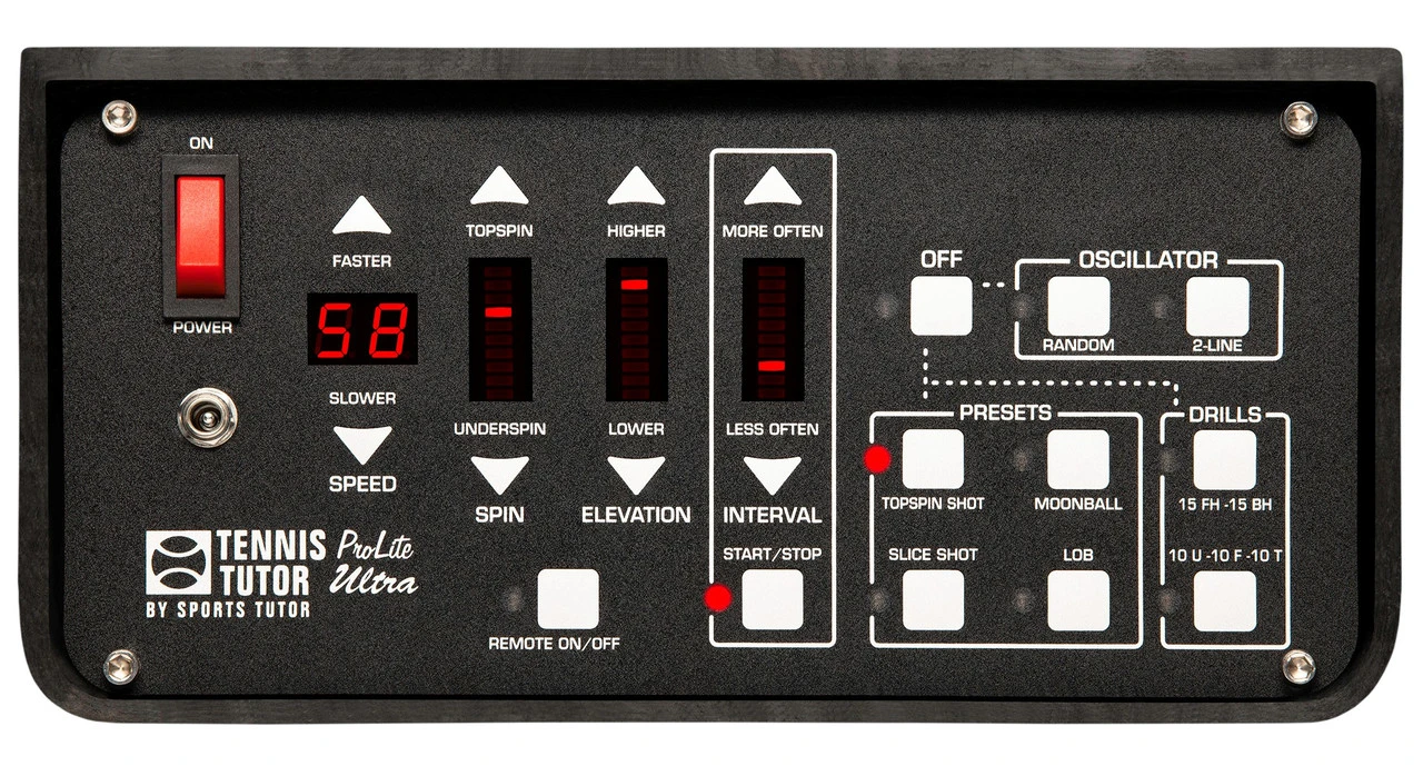 - Four PRESET shots:Â Topspin, Slice, Moonball, Lob. All PRESET shots are customizable so you can modify the speed, spin, elevation and interval. Your modified settings will be automatically stored.
