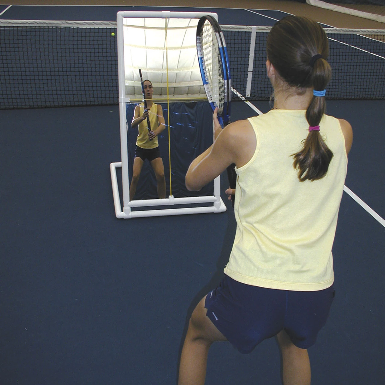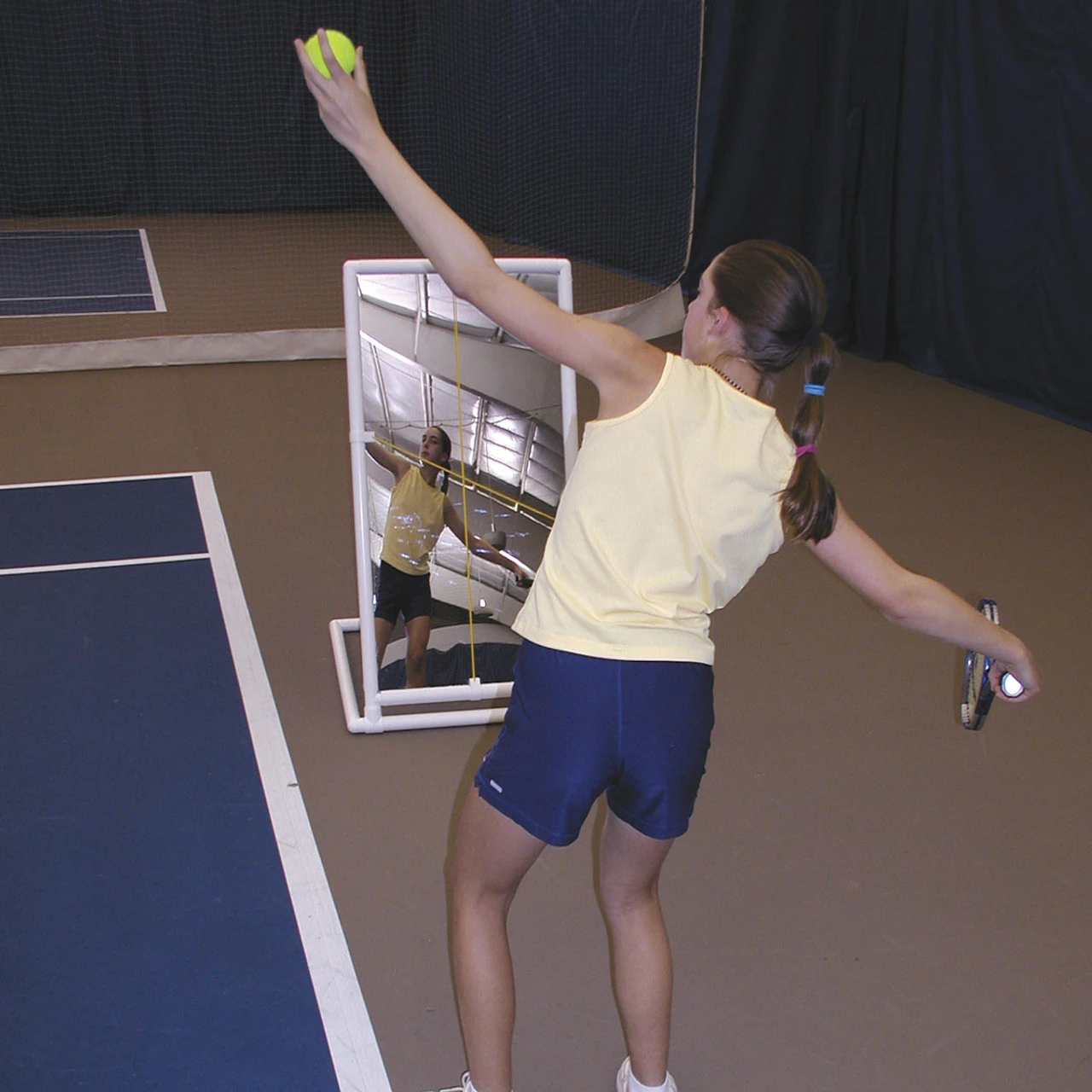 However, this story is important to realize the importance of the training aid. It can make a huge difference in your tennis. Your Training Mirror comes fully assembled. Just slide the back support brace into place and CAREFULLY PEEL OFF the protective film on the mirror. Also note that the angle of the mirror is adjustable by depressing the pin in the back brace. And the vertical and horizontal yellow guides can be adjusted in seconds to help create visual checkpoints for any stroke or element of any stroke in the game.