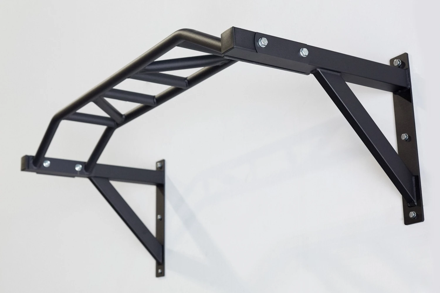 REP’s Wall Mounted Multi-Grip Pull-Up Bar features a variety of grip options for different types of pull-ups. Its versatile design features traditional, neutral, close, wide-grip, and angled options. The steel bar is 1.25” thick, the standard size for a pull-up bar. It’s coated in a nonslip powder coating to help keep your hands from slipping.