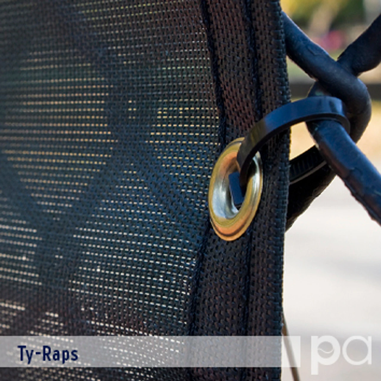 Plastic cable tie wraps (Ty-Raps) for use with all brands and styles of windscreen and netting. Great for securing your windscreen and any number of odd jobs on the courts.